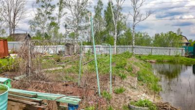 Вдоль забора протянулся прудик — можно запустить рыбок или сделать уютную беседку для приятных посиделок