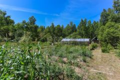 Также есть самодельная теплица — урожаи радуют глаз: грядки из дерева с мягкой землей, большой деревянный парник со съемными стеклянными рамами. Всё растет отлично!