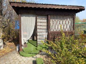 Общая площадь участка около 12 соток. На участке распложен двухэтажный дом для семейного отдыха. Кроме того на участке есть две теплицы, открытая беседка, настоящая Русская Баня. Дорожки вдоль участка выложены декоративной плиткой. Новым хозяевам достается разработанный, ухоженный участок, плодово-ягодные насаждения, мебель и бытовая техника.