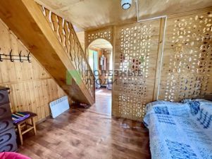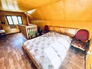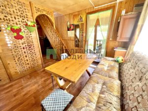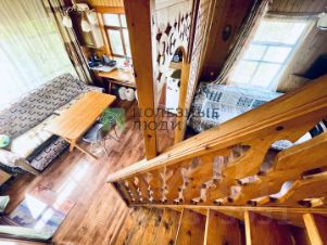 Фундамент блоки. Стены первого этажа - брус на 150 мм., перекрытия брус, второй этаж каркасный. Внутри стильно обшит деревом, снаружи сайдингом. Полы поднимали, ровные.