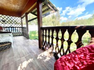 Площадь дома примерно 42 м2 без учета большой веранды.