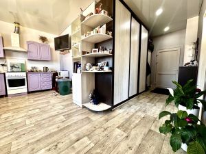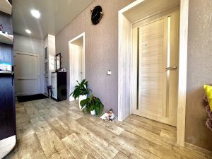 Интерьер выполнен со вкусом: в каждой комнате натяжные потолки, качественный линолеум, прочные межкомнатные двери и пластиковые окна. Установлен кондиционер, что обеспечит комфорт в любое время года.