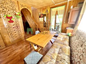 Фундамент блоки. Стены первого этажа - брус на 150 мм., перекрытия брус, второй этаж каркасный. Внутри стильно обшит деревом, снаружи сайдингом. Полы поднимали, ровные.