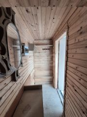 На участке присутствует двухэтажное строение общей площадью 32 кв.м: на первом этаже расположена баня с предбанником, на втором — просторная комната отдыха.